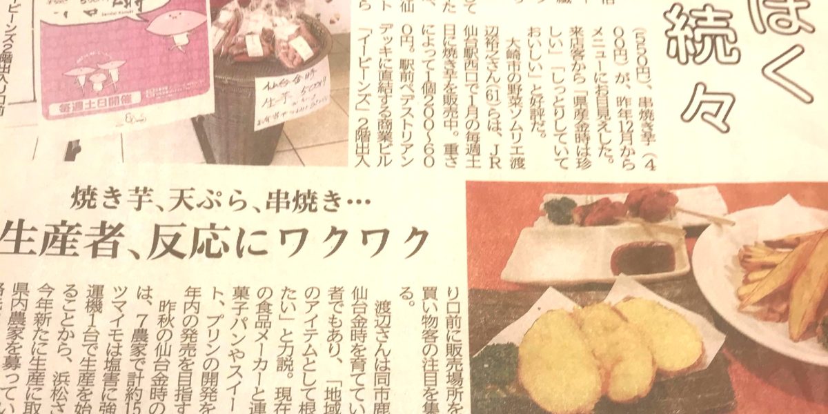 1月18日掲載の河北新報でイービーンズで焼き芋販売中の取材をして頂いました。